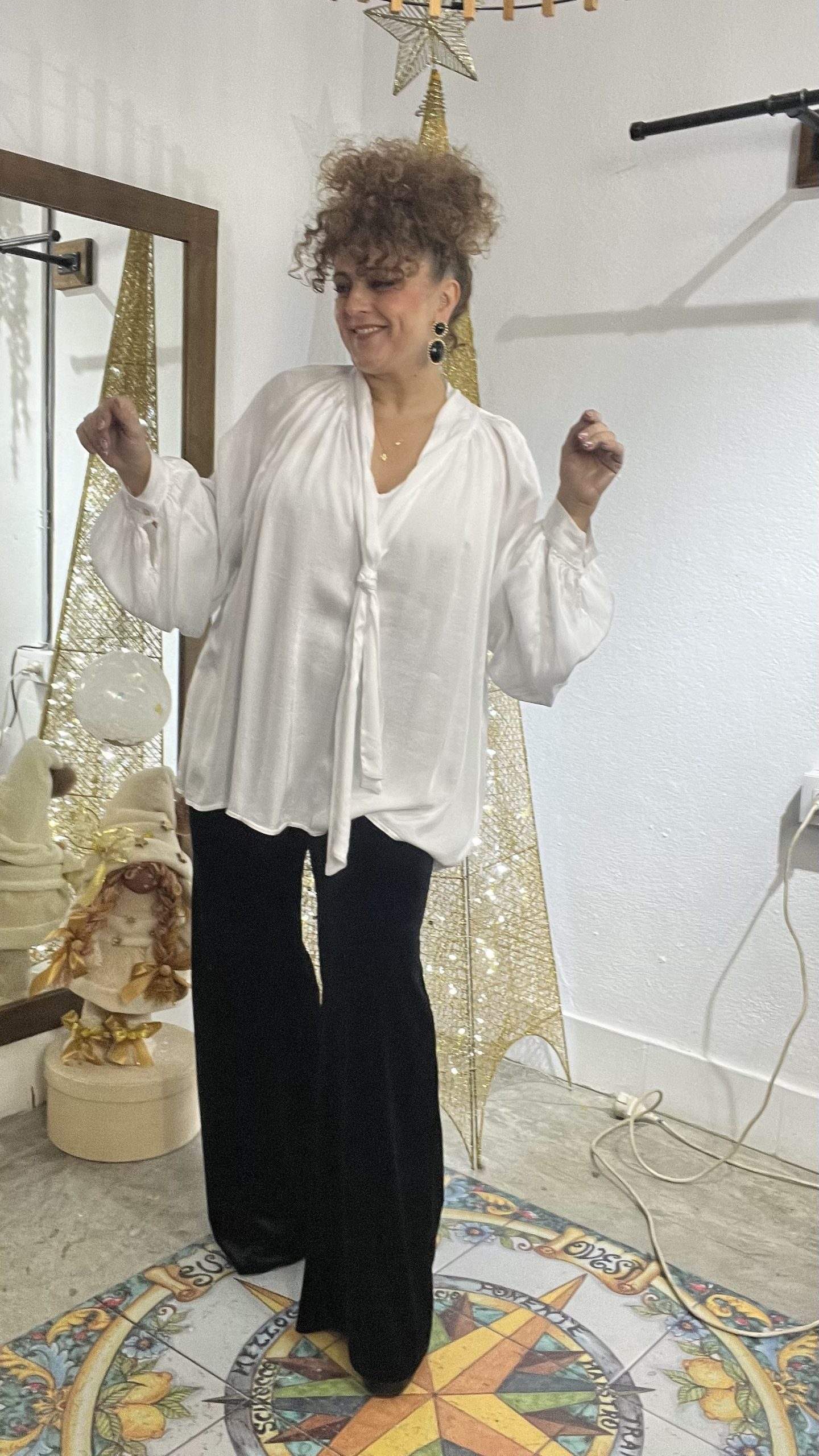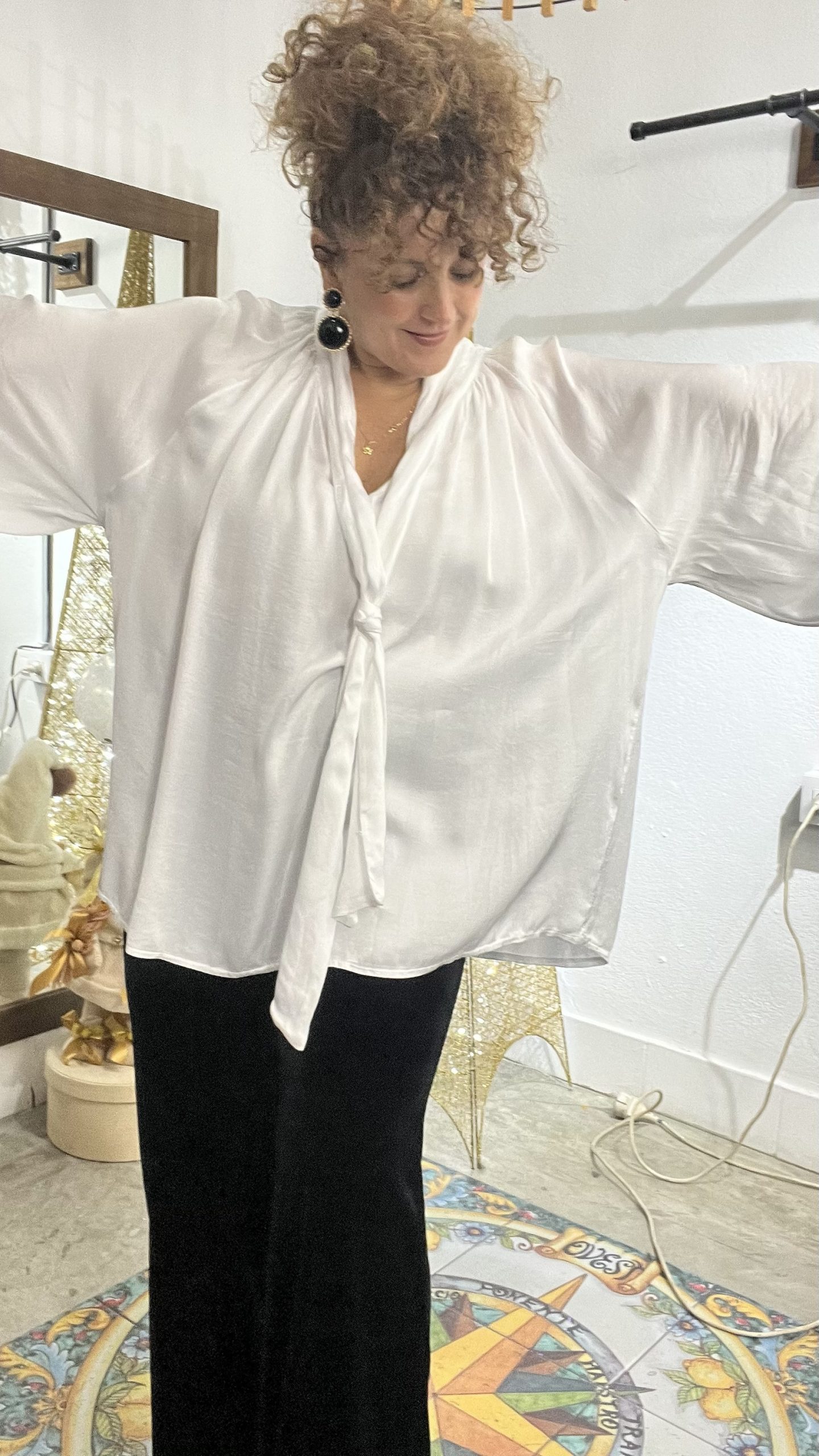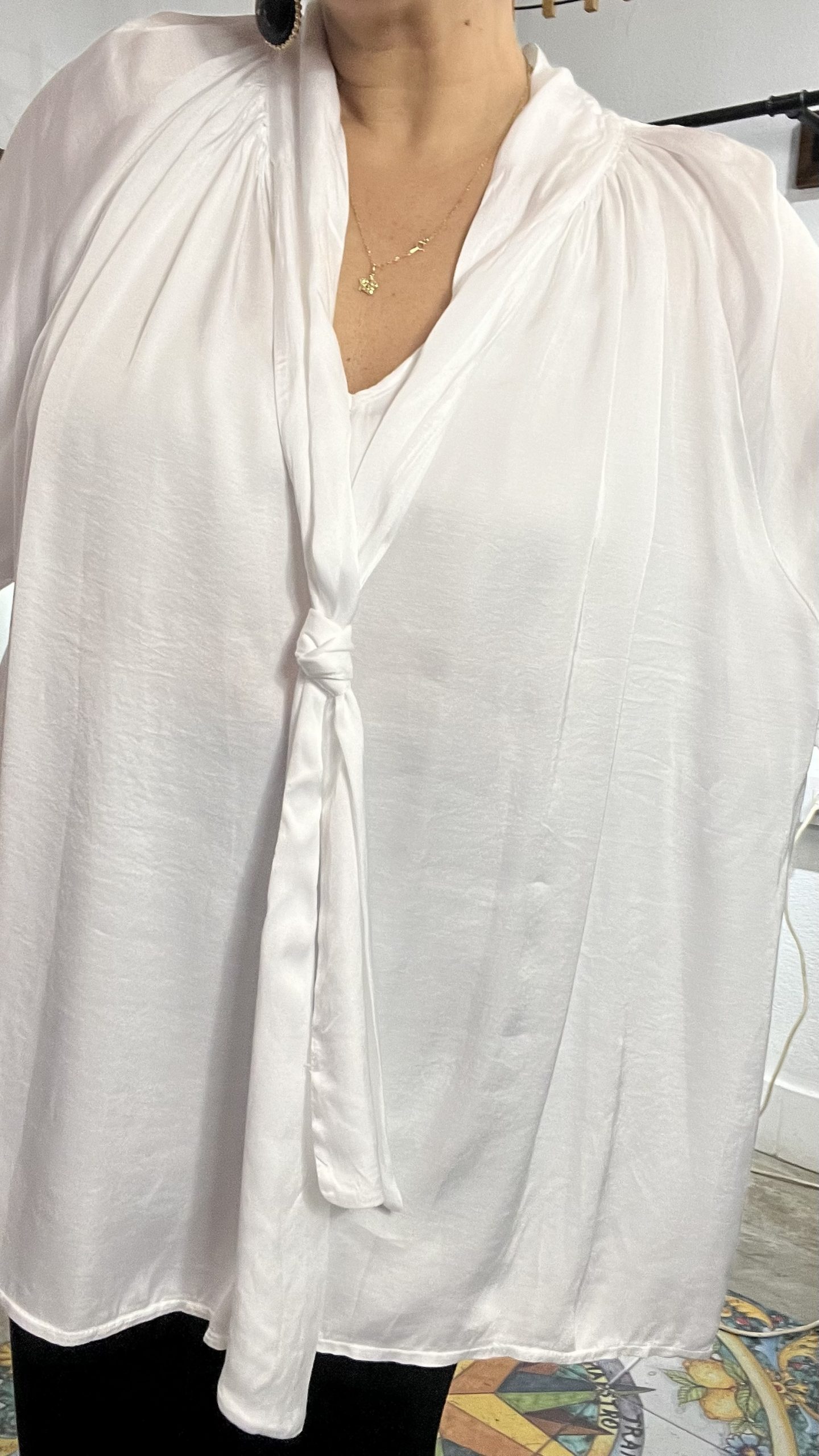 & Free ShippingCamisa de satén con lazada oversize