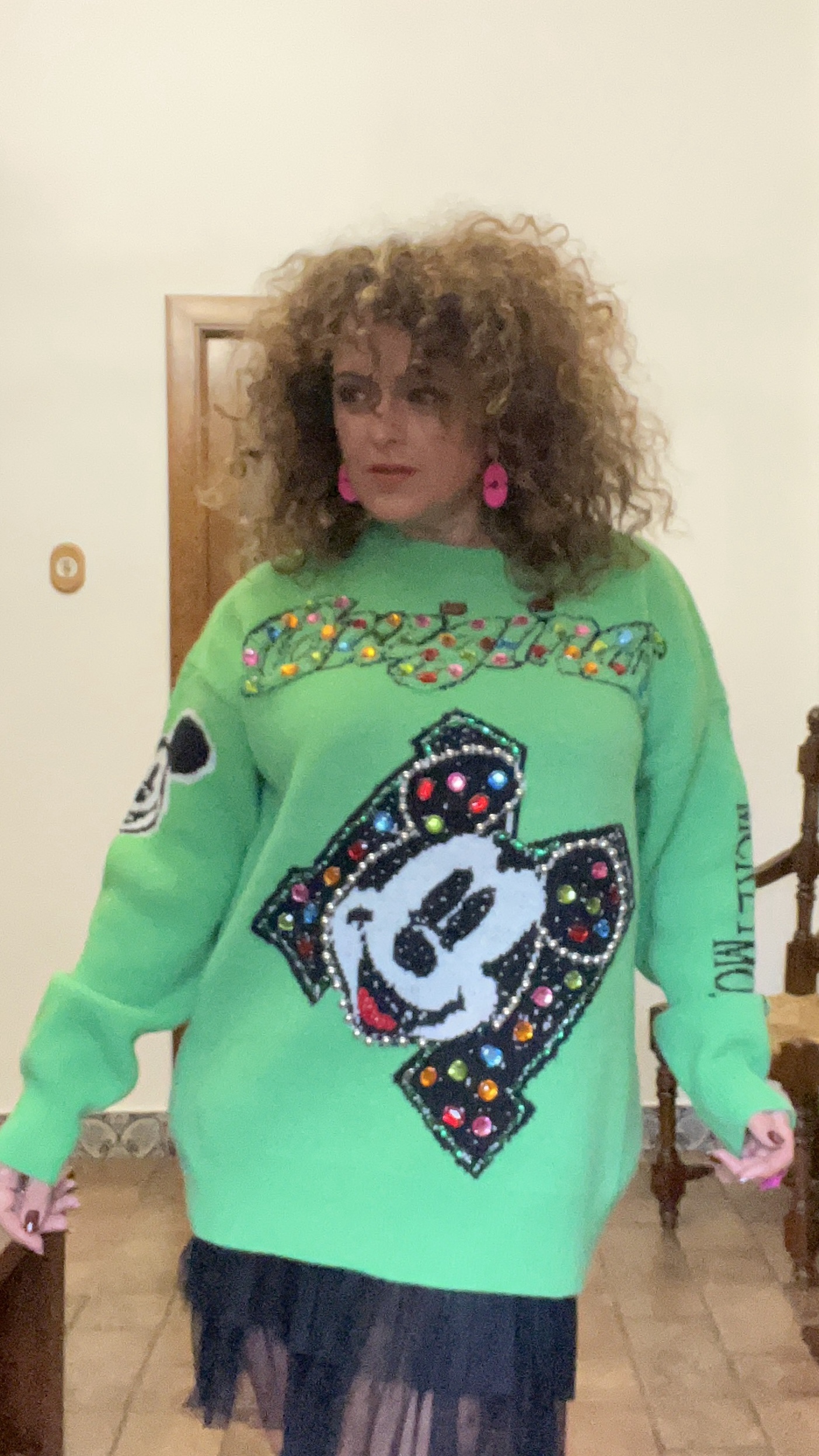 & Free ShippingJersey de lana gordita con dibujo y piedras de colores